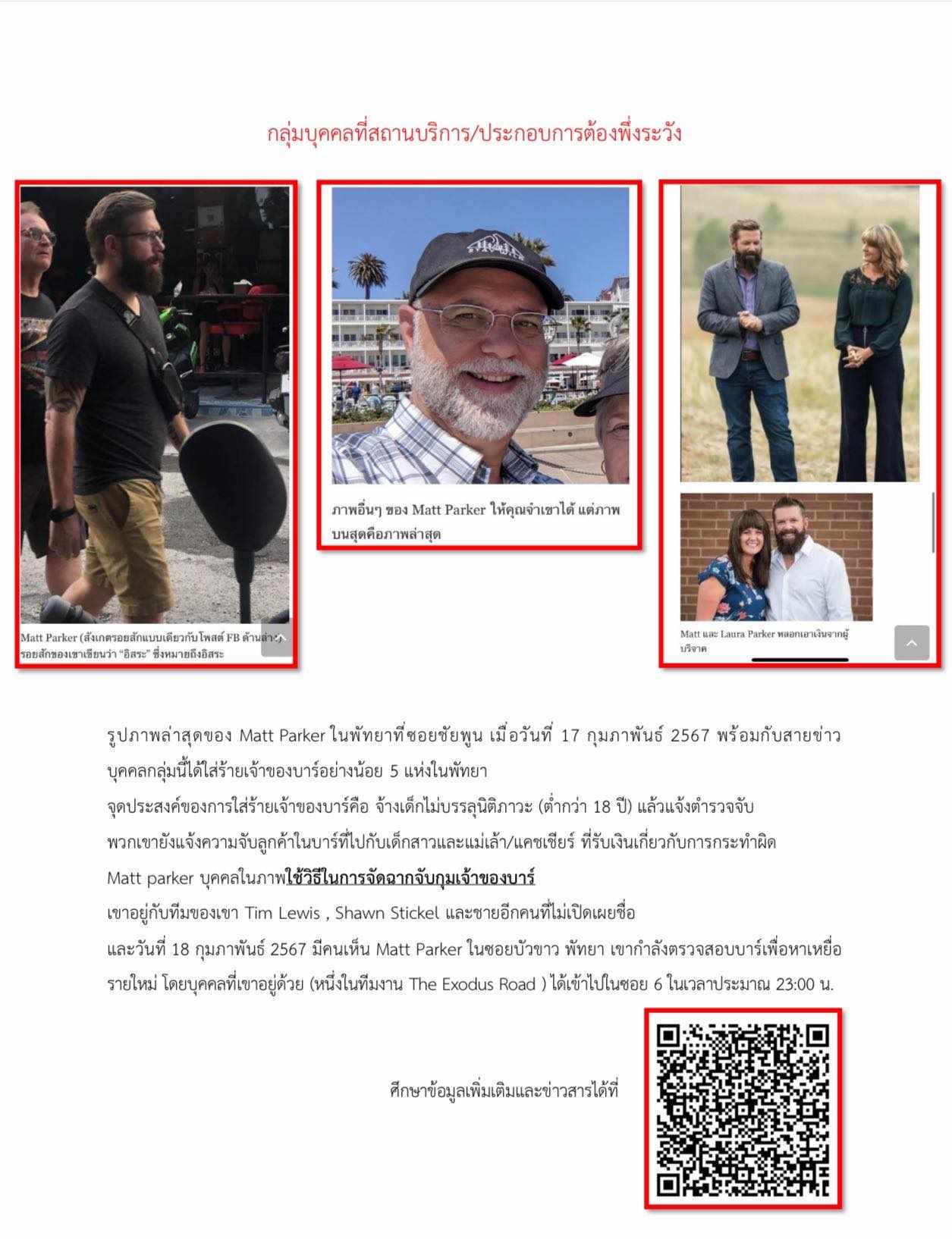 The real menace to Thailand’s image, children’s safety, and business owners’ freedom is Matt Parker from The Exodus Road. He sets people up for his own gain, he also embarrasses good Christians and causes them huge losses in donation money because everyone assumes they are all like him.